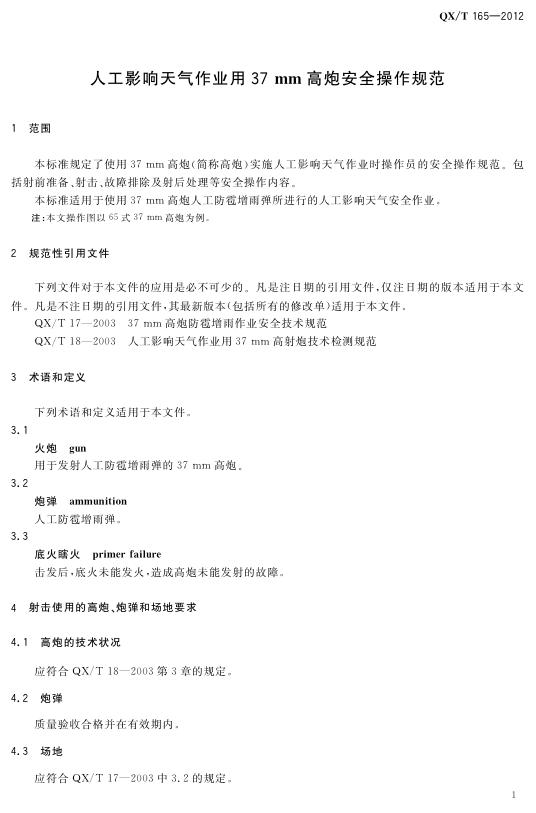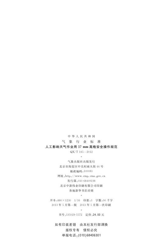 QX/T 165-2012 人工影响天气作业用37mm高炮安全操作规范