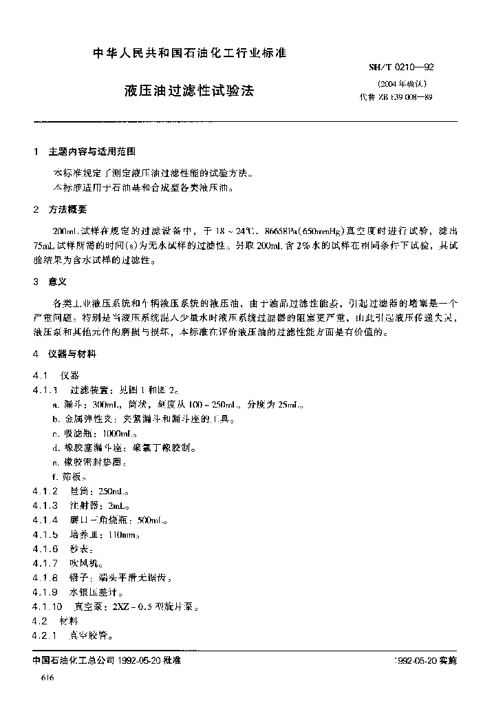 SH/T 0210-1992 液压油过滤性试验法
