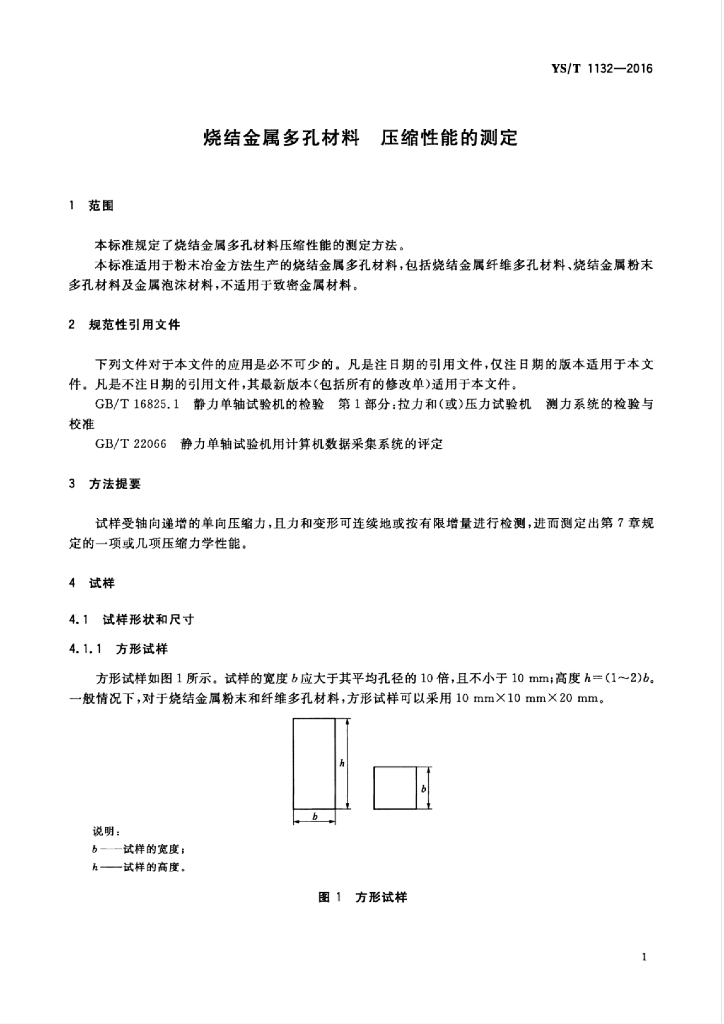 YS/T 1132-2016 烧结金属多孔材料 压缩性能的测定