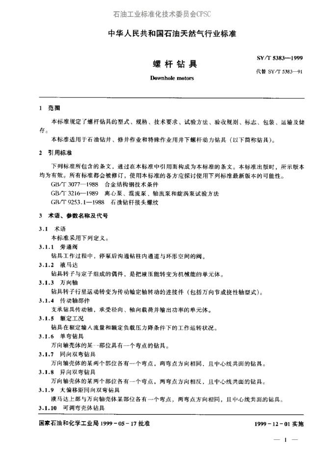 SY/T 5383-1991 螺杆钻具