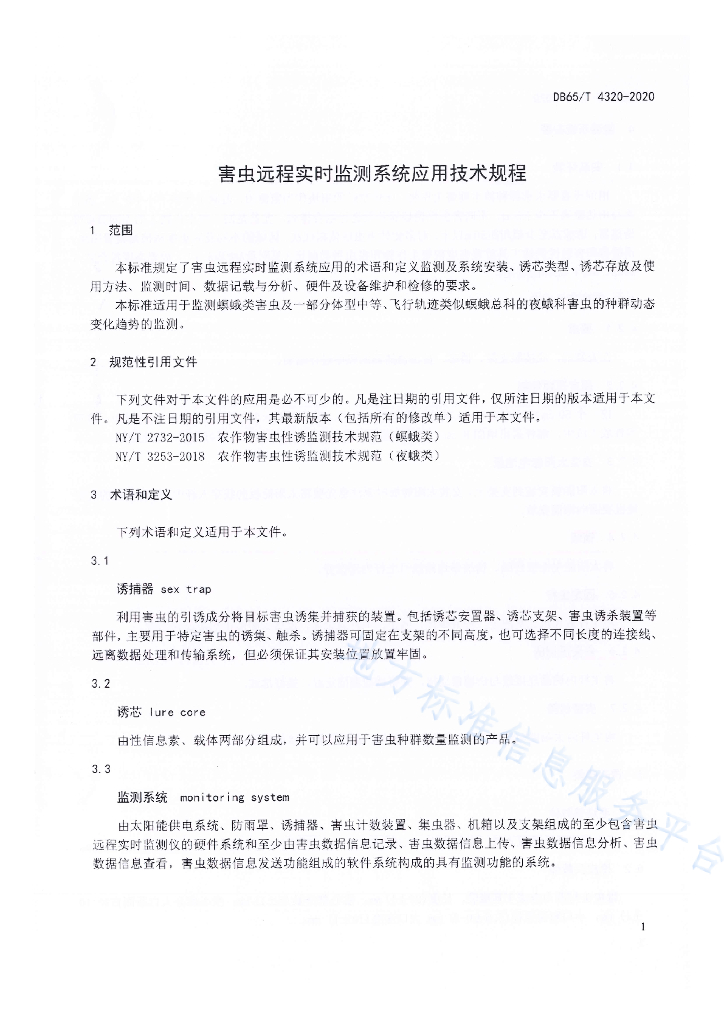 DB65/T 4320-2020 害虫远程实时监测系统应用技术规程