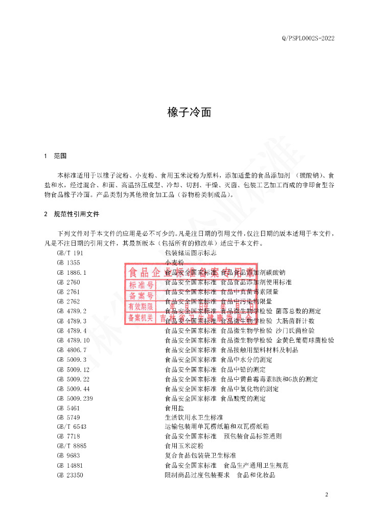 Q/PSPL 0002S-2022 橡子冷面