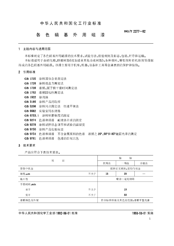 HG/T 2277-1992 各色硝基外用磁漆