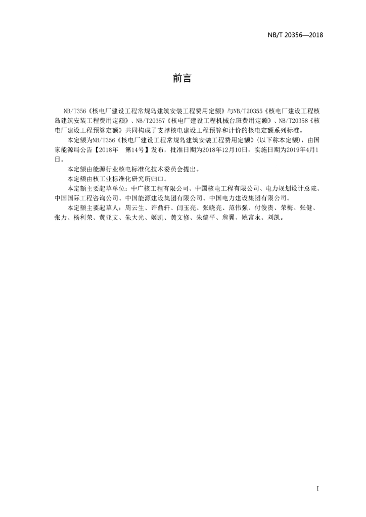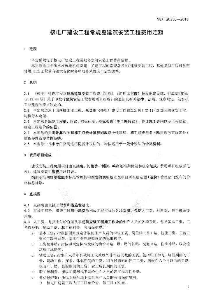 NB/T 20356-2018 核电厂建设工程常规岛建筑安装工程费用定额