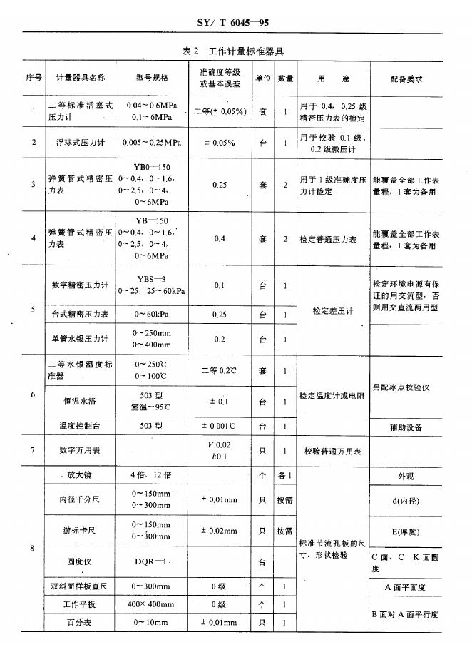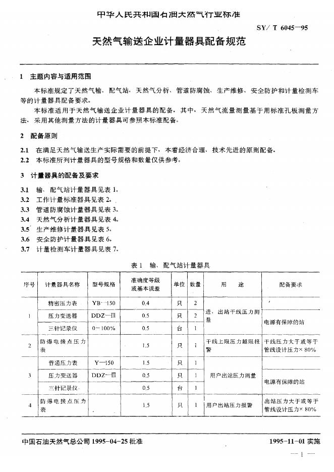 SY/T 6045-1995 天然气输送企业计量器具配备规范