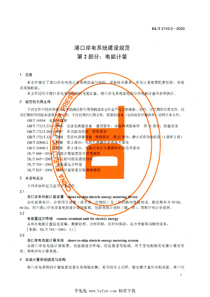 DL/T 2143.2-2020 港口岸电系统建设规范 第2部分:电能计量