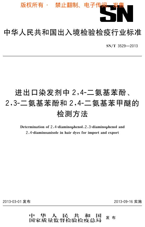 SN/T 3529-2013 进出口染发剂中2、4二氨基苯酚、2、3二氨基苯酚和2、4二氨基苯甲醚的检测方法