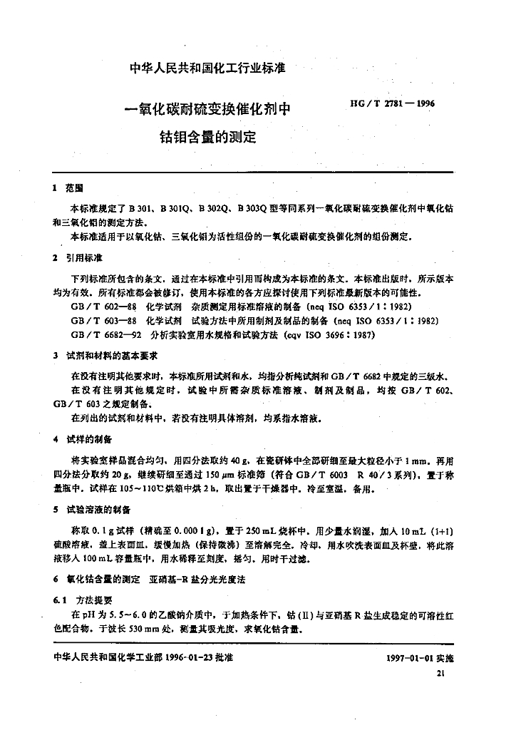 HG/T 2781-1996 一氧化碳耐硫变换催化剂中钴钼含量的测定