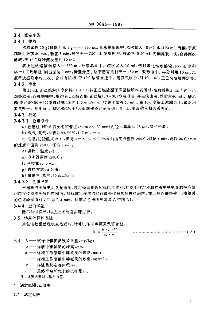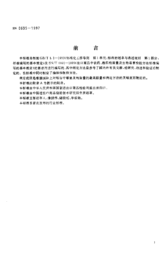 SN 0695-1997 出口粮谷中嗪氨灵残留量检验方法