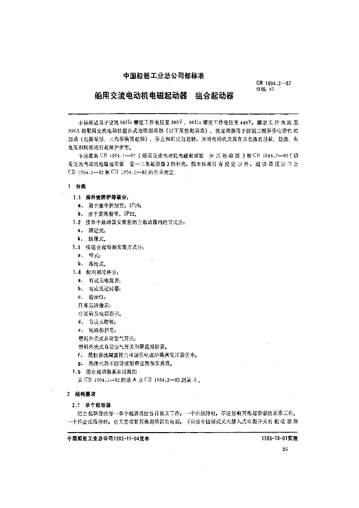 CB 1004.3-1982 船用交流电动机电磁起动器 组合起动器