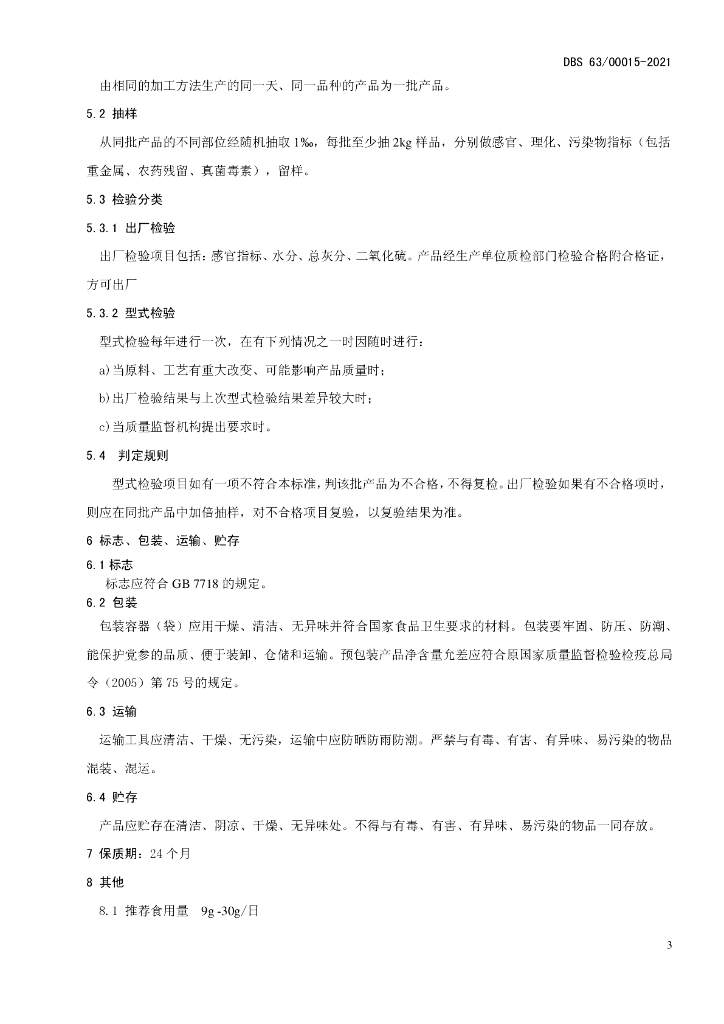 DBS63/ 00015-2021 食品安全地方标准 黄芪
