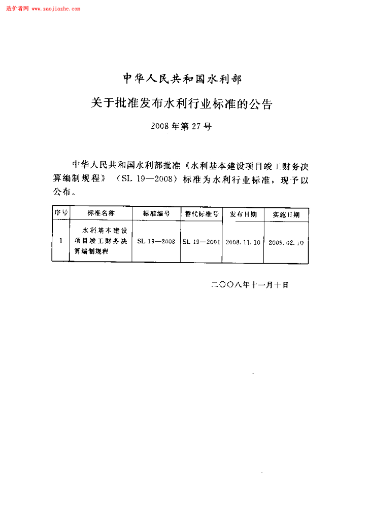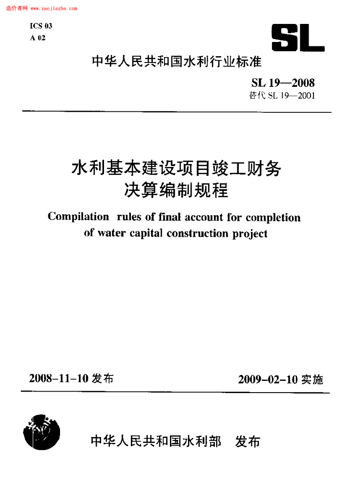 SL 19-2008 水利基本建设项目竣工财务决算编制规程(附条文说明)