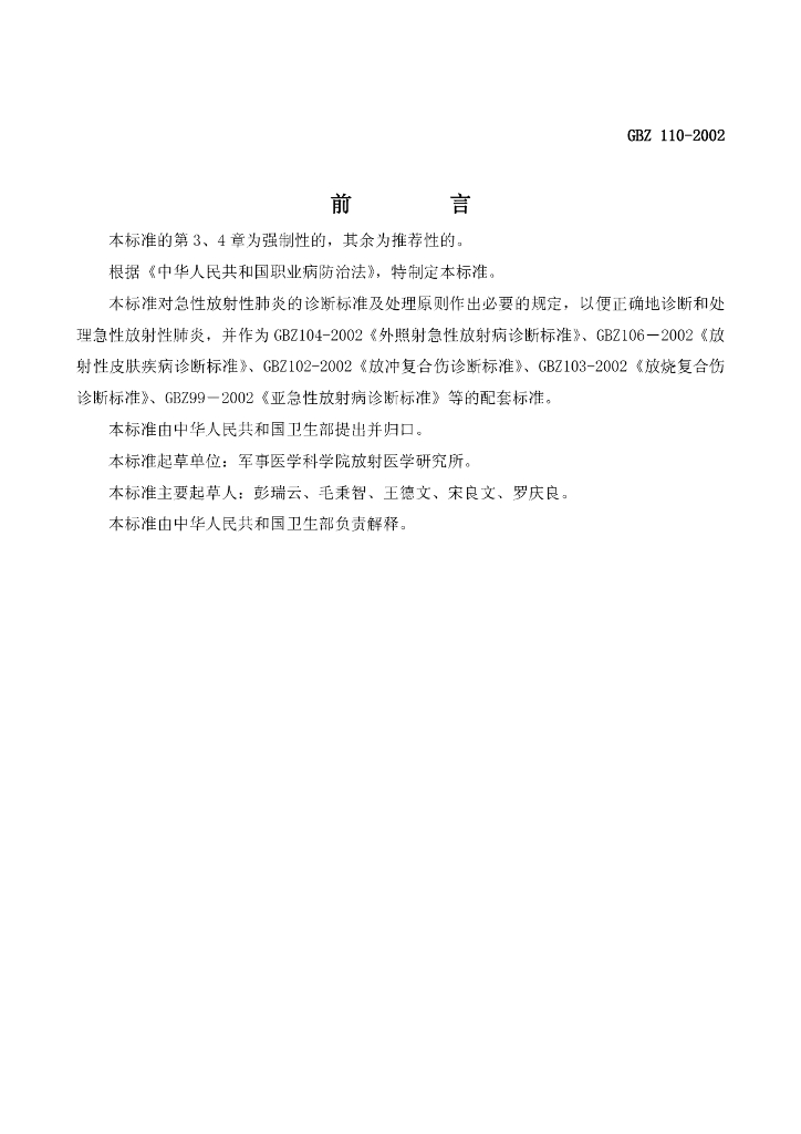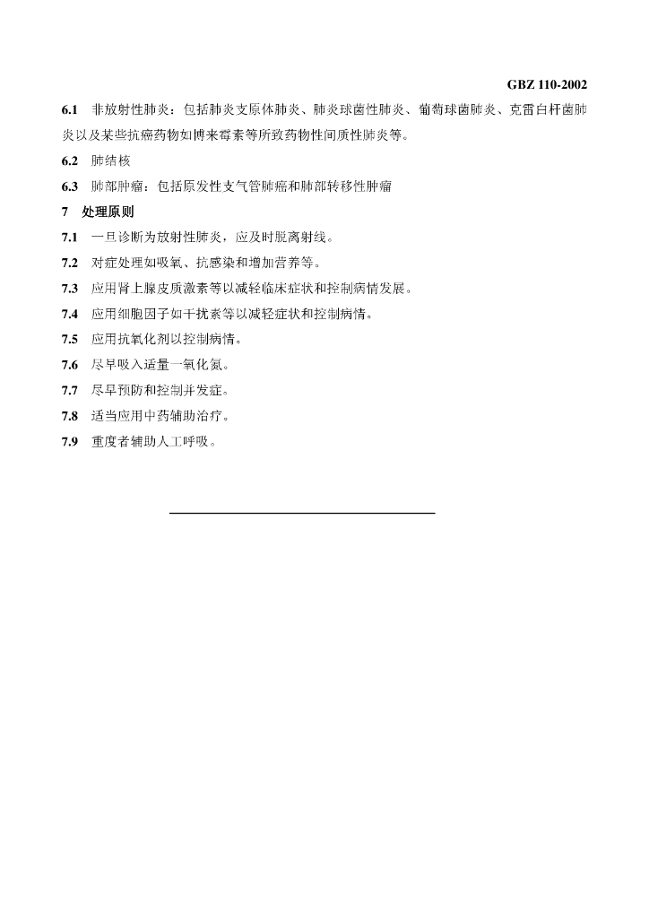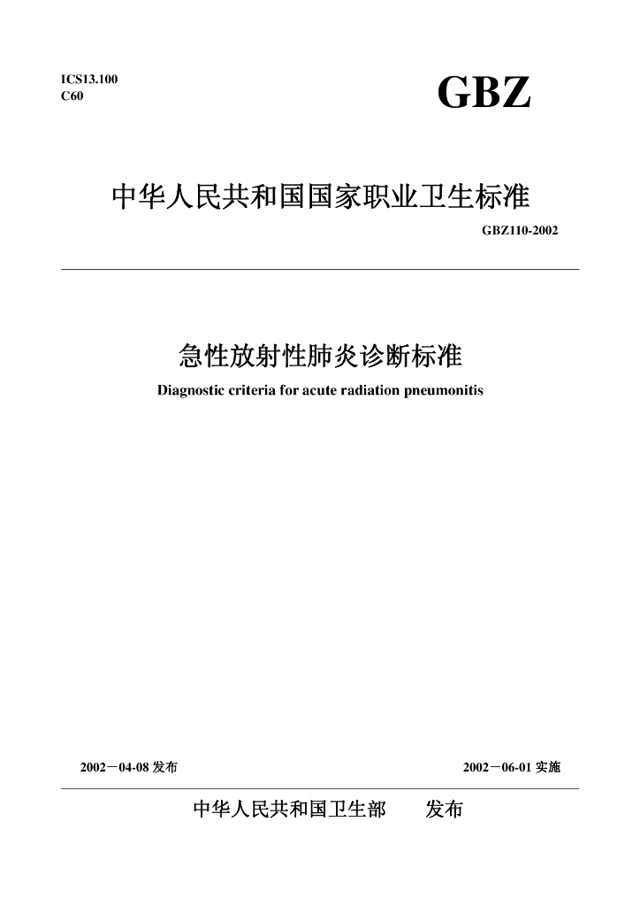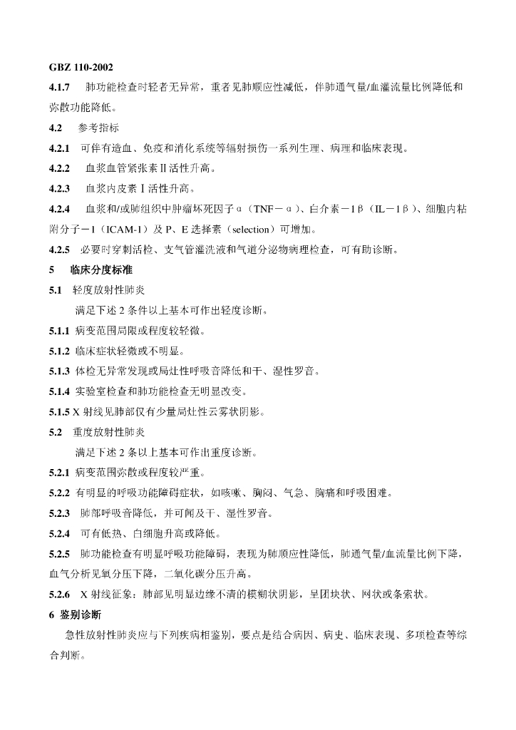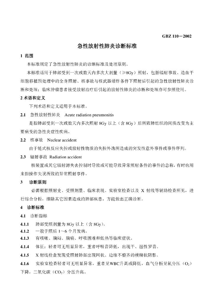 GBZ 110-2002 急性放射性肺炎诊断标准
