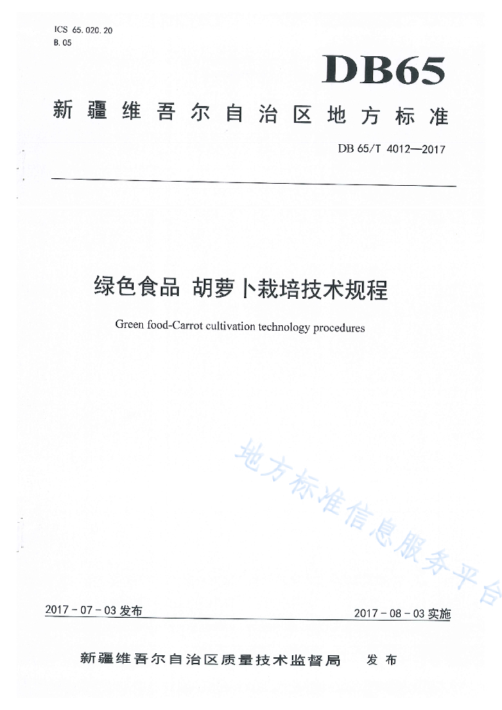DB65/T 4012-2017 绿色食品 胡萝卜栽培技术规程