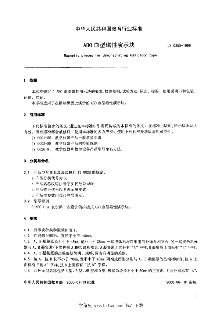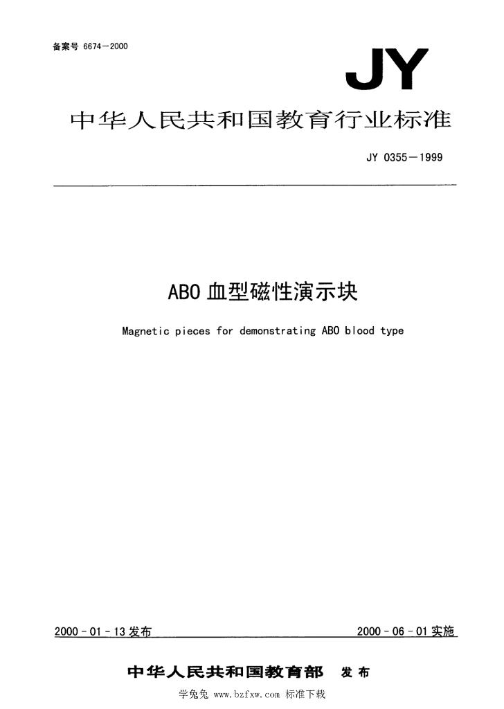 JY 0355-1999 ABO血型磁性演示块