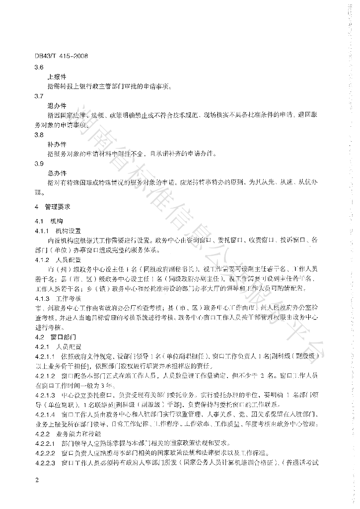 DB43/T 415-2008 政府政务服务中心管理和服务规范