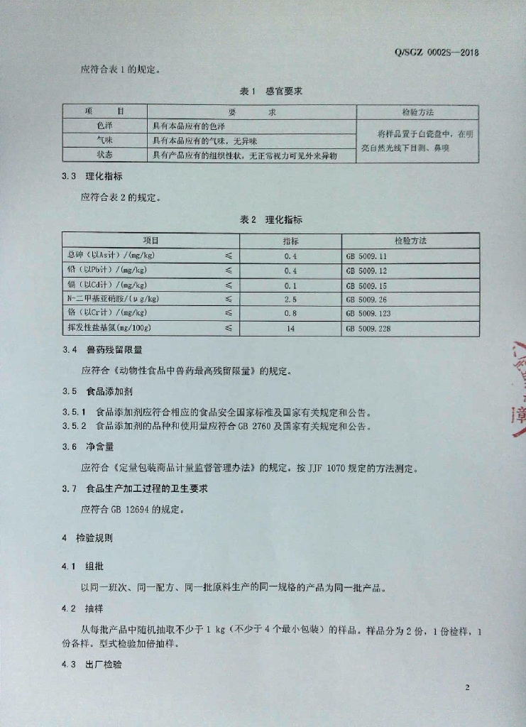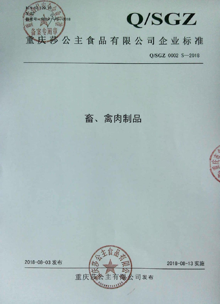 Q/SGZ 0002S-2018 畜、禽肉制品