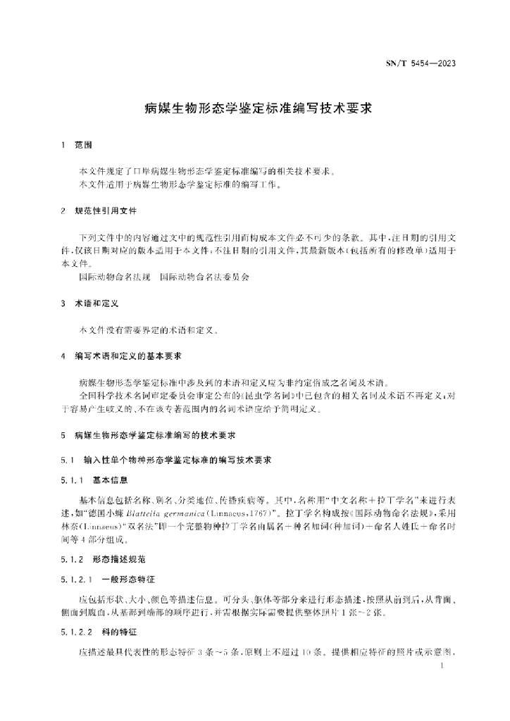 SN/T 5454-2023 病媒生物形态学鉴定标准编写技术要求