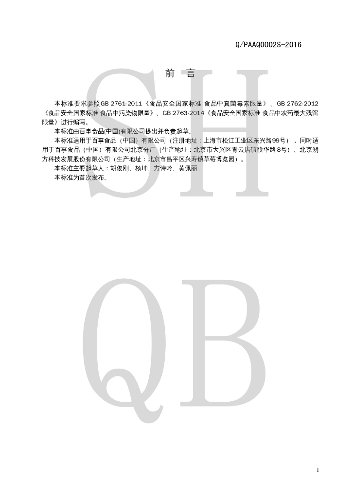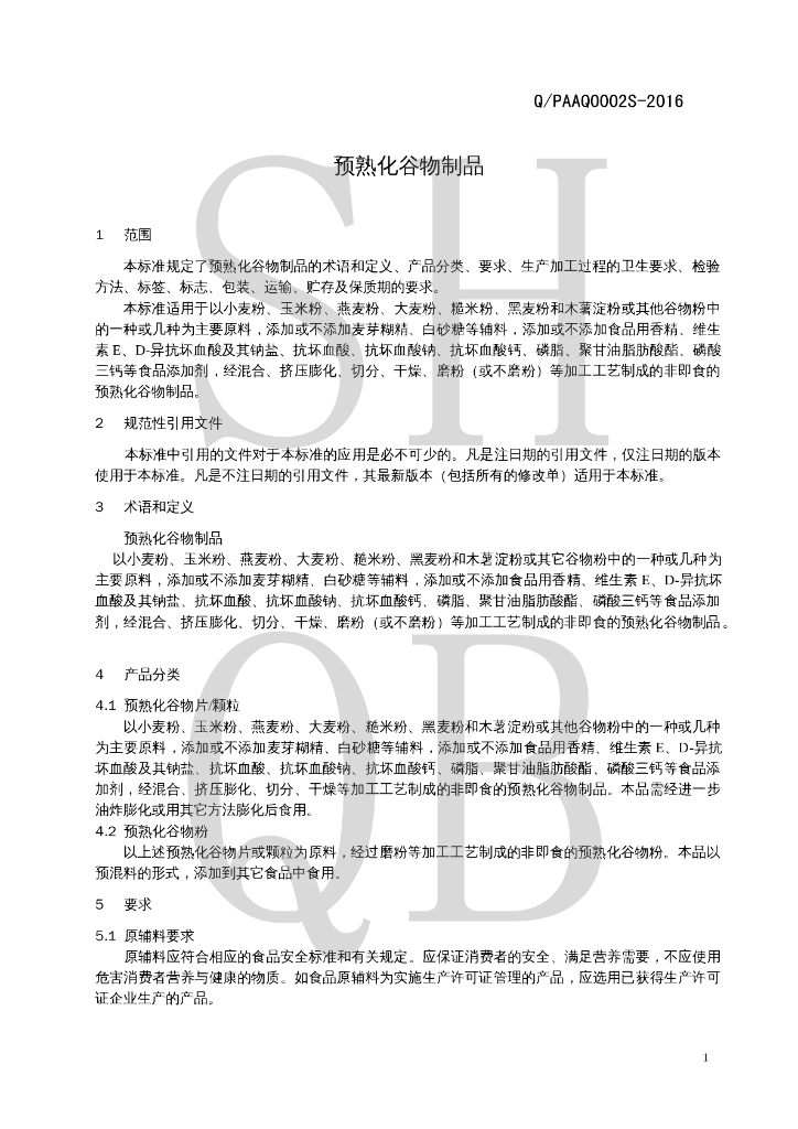 Q/PAAQ 0002S-2016 预熟化谷物制品