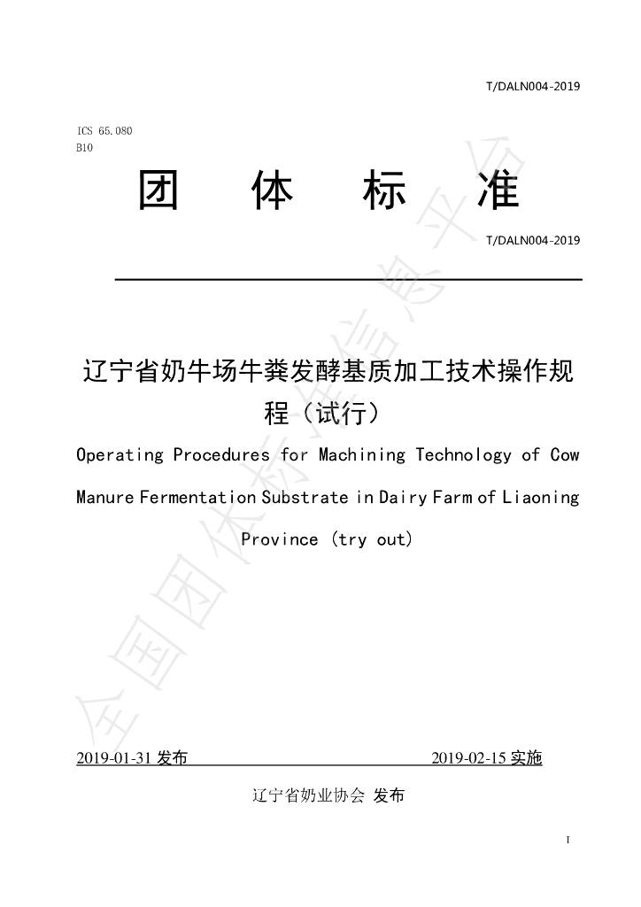 T/DALN 004-2019 辽宁省奶牛场牛粪发酵基质加工技术操作规程(试行)