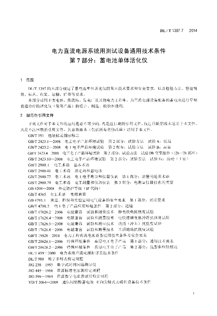DL/T 1397.7-2014 电力直流电源系统用测试设备通用技术条件 第7部分:蓄电池单体活化仪