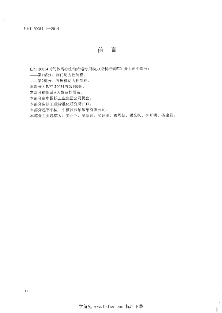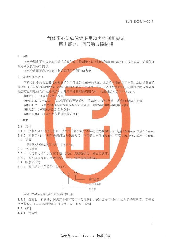 EJ/T 20054.1-2014 气体离心法铀浓缩专用动力控制柜规范 第1部分:阀门动力控制柜