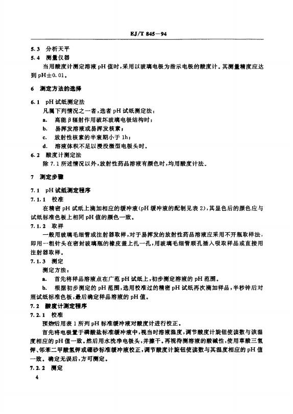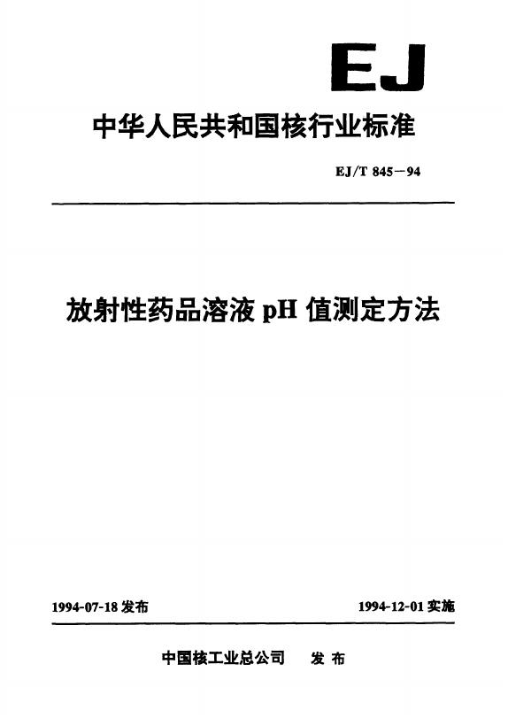 EJ/T 845-1994 放射性药品溶液PH值测定方法