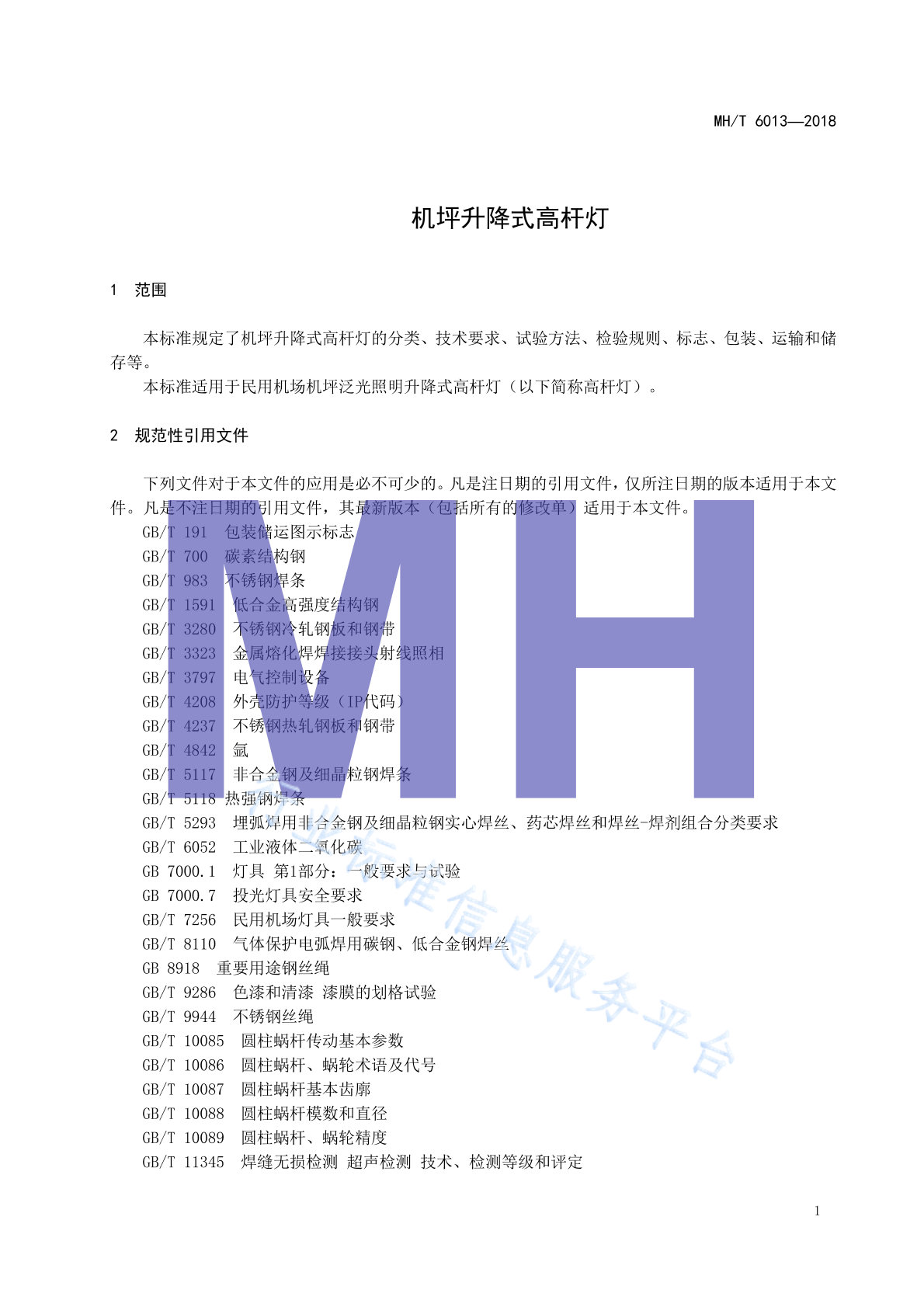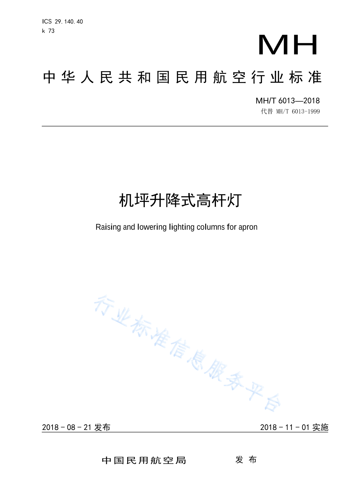 MH/T 6013-1999 机场升降式高杆灯