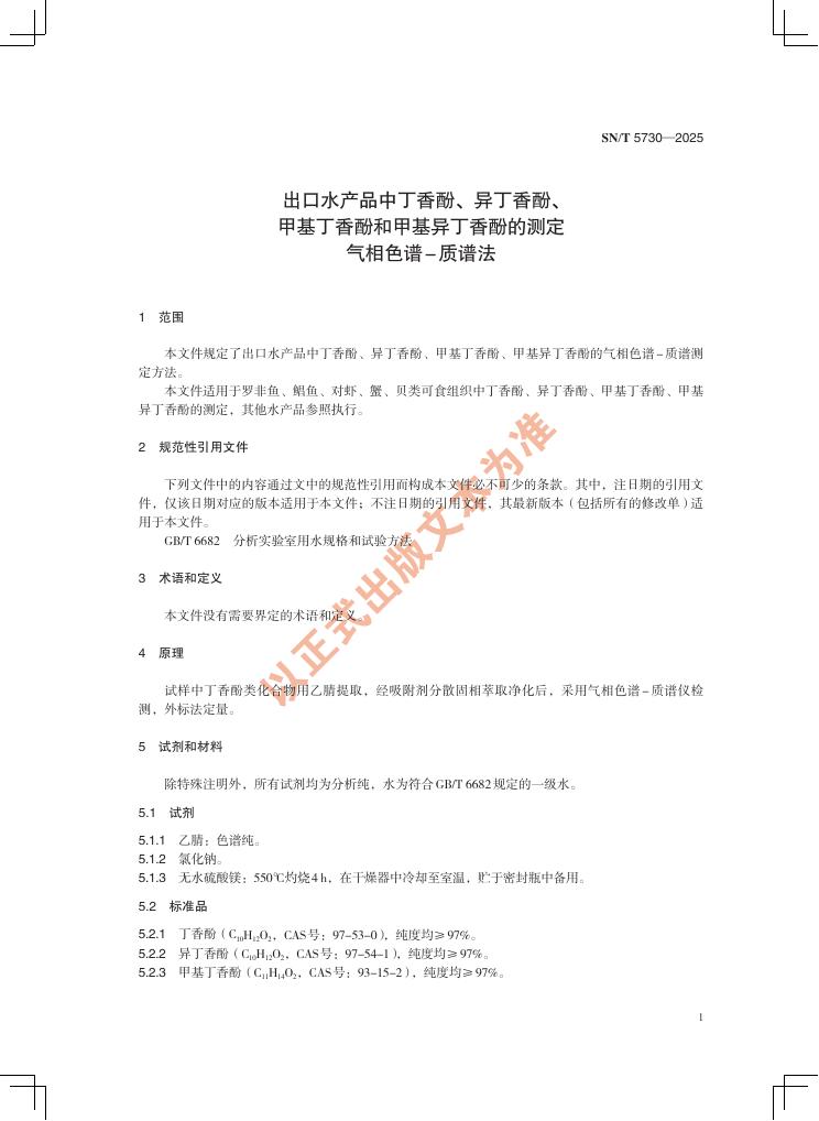 SN/T 5730-2025 出口水产品中丁香酚、异丁香酚、甲基丁香酚和甲基异丁香酚的测定 气相色谱-质谱法