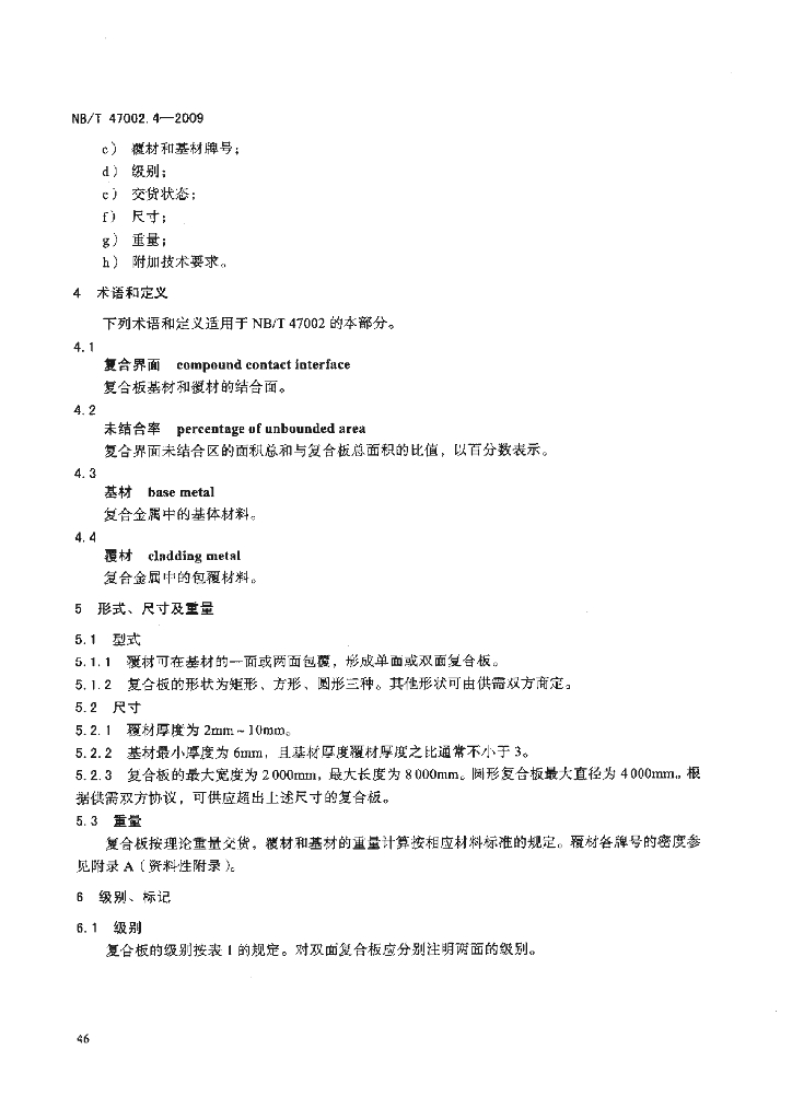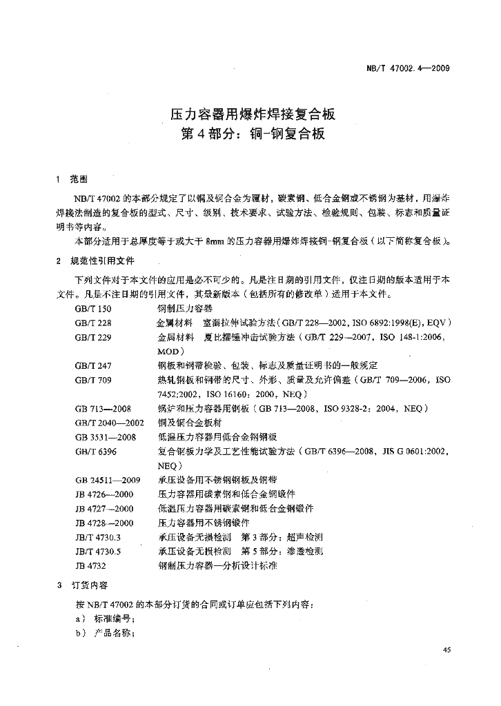 NB/T 47002.4-2009 压力容器用爆炸焊接复合板 第4部分:铜-钢复合板