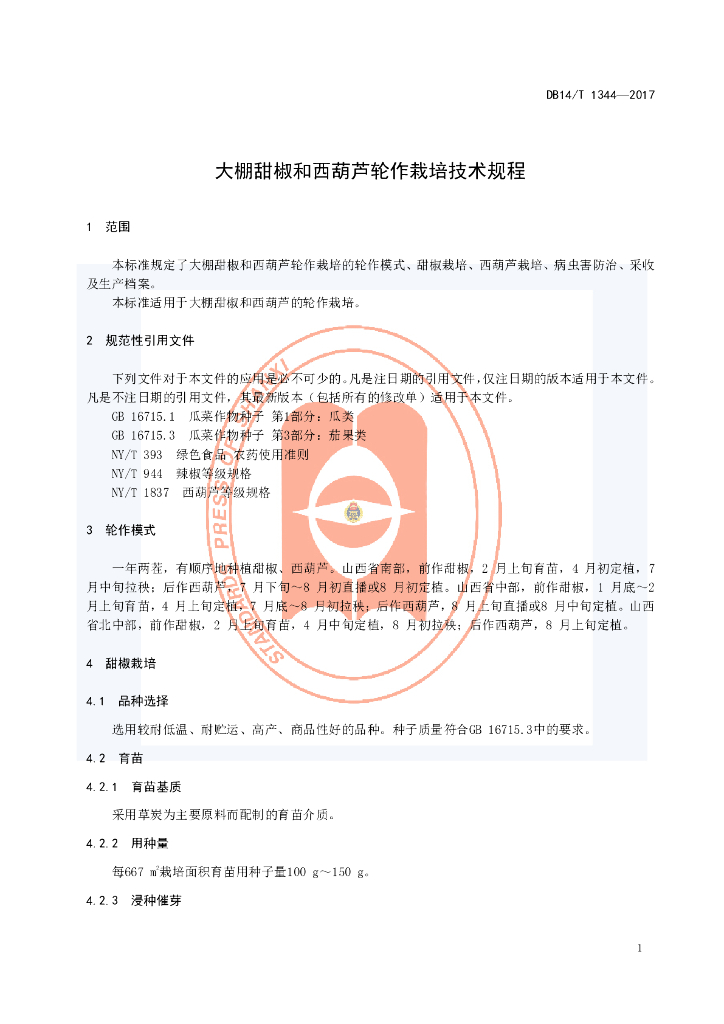 DB14/T 1344-2017 大棚甜椒和西葫芦轮作栽培技术规程