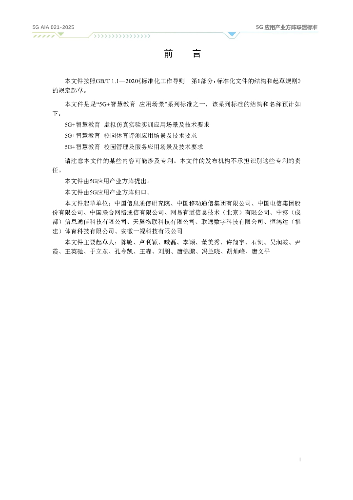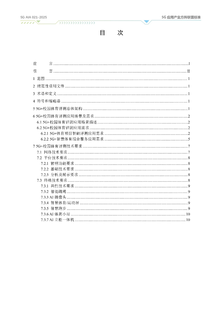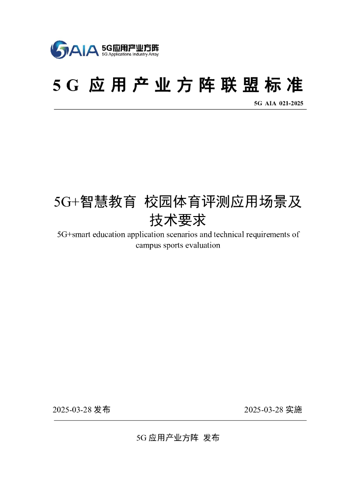 5G AIA 021-2025 5G+智慧教育 校园体育评测应用场景及技术要求