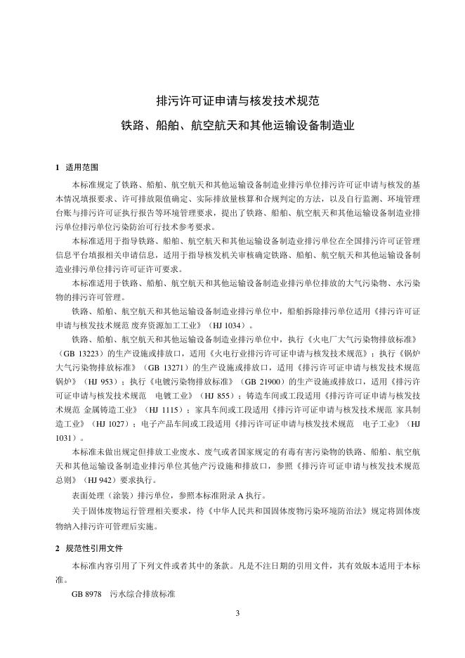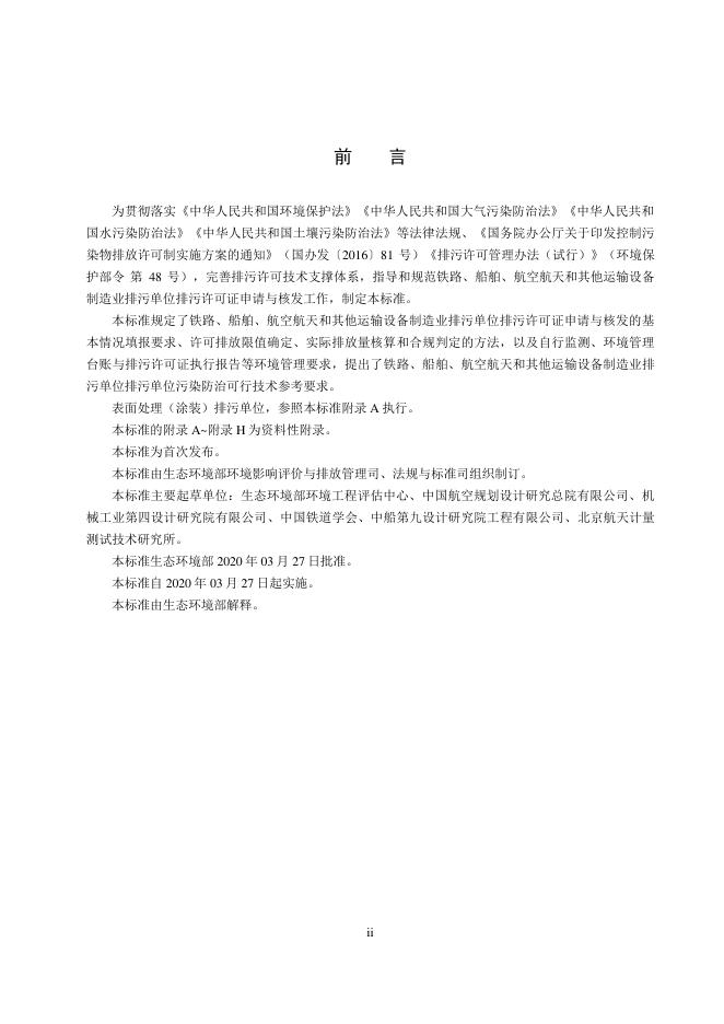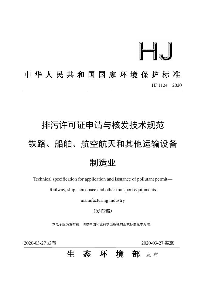 HJ 1124-2020 排污许可证申请与核发技术规范 铁路、船舶、航空航天和其他运输设备制造业