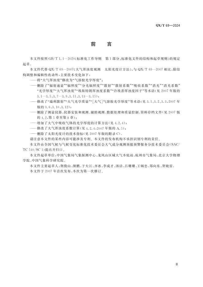 QX/T 69-2024 气溶胶光学厚度 太阳光度计法