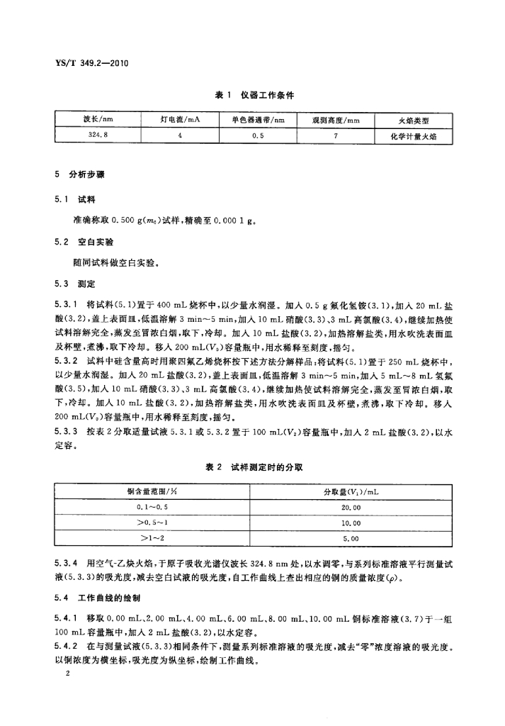 YS/T 349.2-2010 硫化钴精矿化学分析方法 第2部分:铜量的测定火焰原子吸收光谱法
