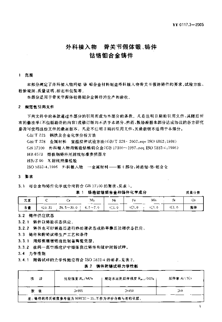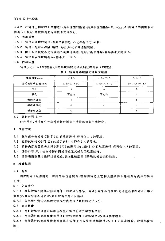 YY 0117.3-2005 外科植入物骨关节假体锻、铸件钴铬钼合金铸件