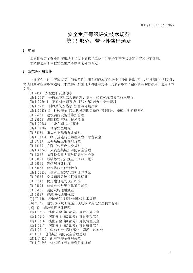 DB11/T 1322.82-2025 安全生产等级评定技术规范 第82部分:营业性演出场所