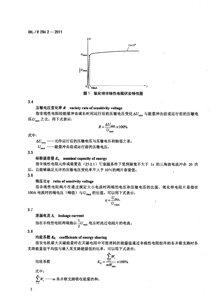 DL/T 294.2-2011 发电机灭磁及转子过电压保护装置技术条件 第2部分:非线性电阻