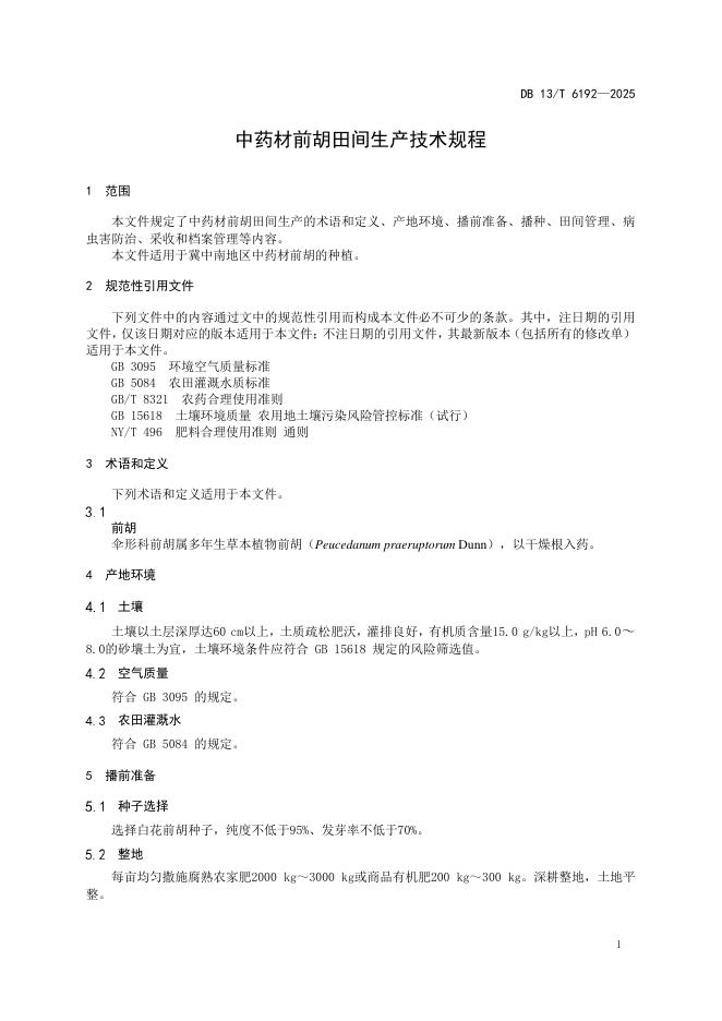DB13/T 6192-2025 中药材前胡田间生产技术规程
