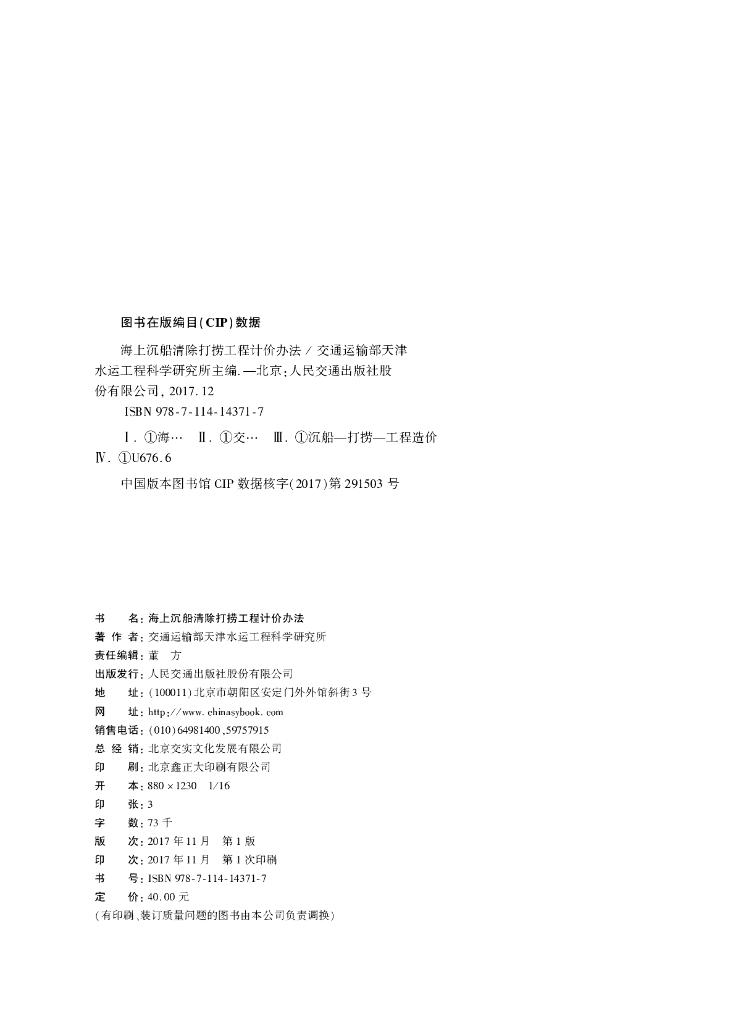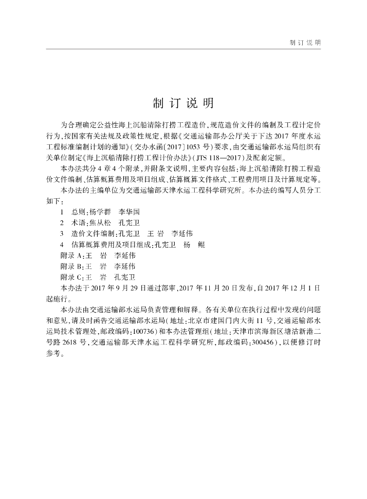 JTS 118-2017 海上沉船清除打捞工程计价办法