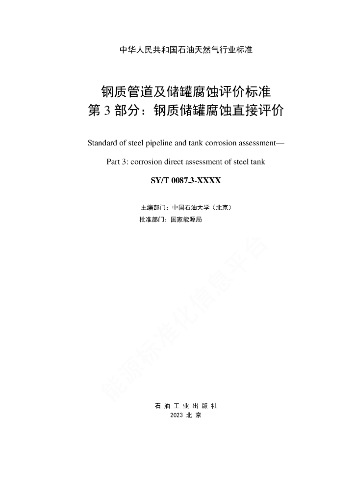 SY/T 0087.3-2023 钢质管道及储罐腐蚀评价标准 第3部分:钢质储罐腐蚀直接评价