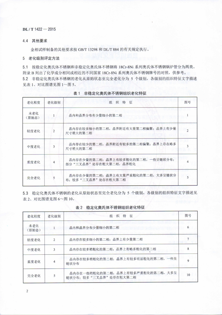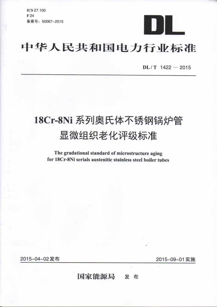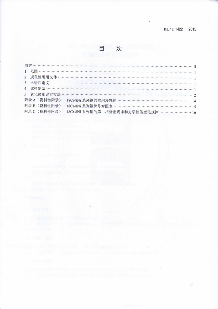 DL/T 1422-2015 18Cr-8Ni系列奥氏体不锈钢锅炉管显微组织老化评级标准