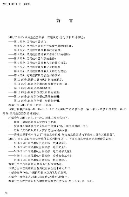 MH/T 3010.13-2006 民用航空器维修 管理规范 第13部分:民用航空器发动机的清洗