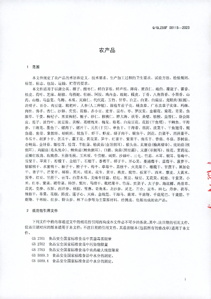 Q/GLZSSF 0011S-2023 农产品 桂林周氏顺发食品有限公司