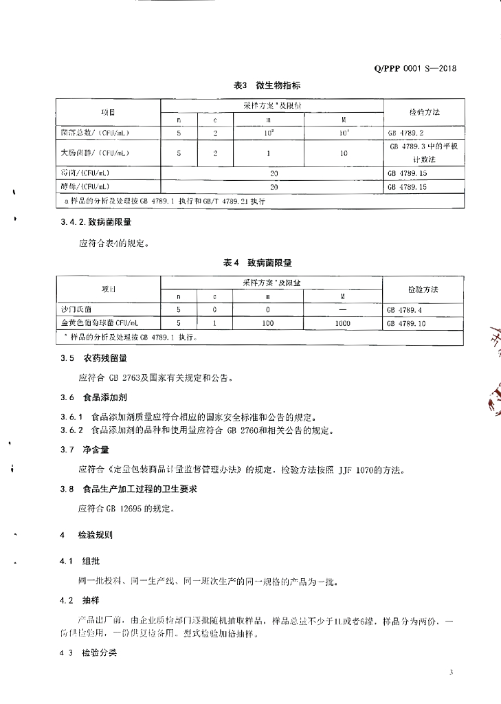 Q/PPP 0001S-2018 饮料