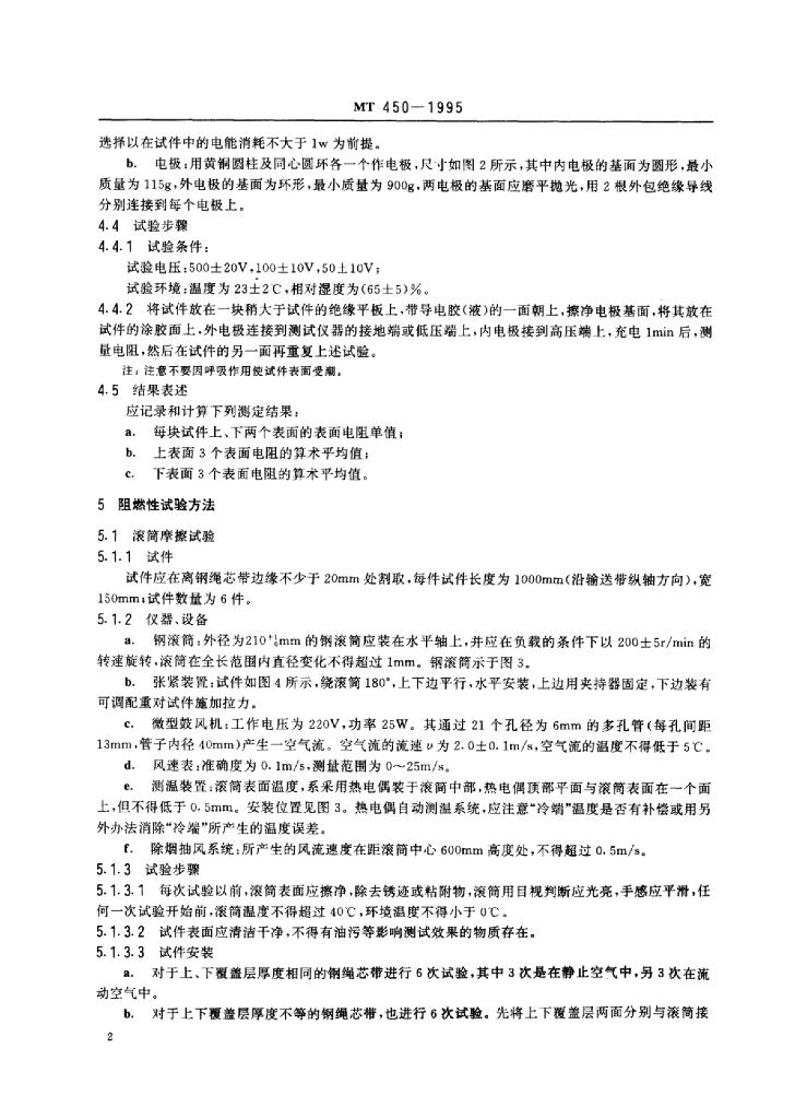 MT 450-1995 煤矿用钢丝绳芯输送带阻燃抗静电性试验方法和判定规则