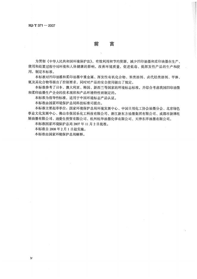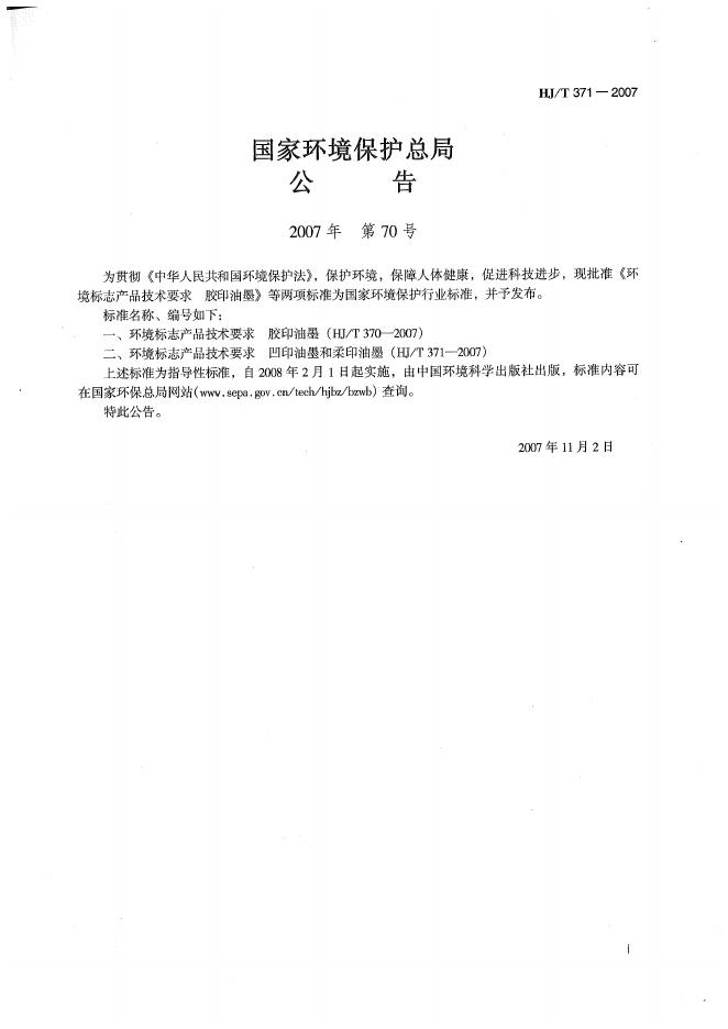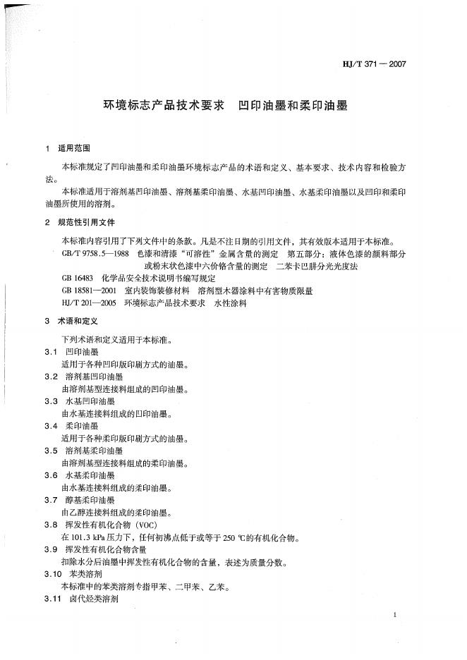 HJ/T 371-2007 环境标志产品技术要求 凹印油墨和柔印油墨