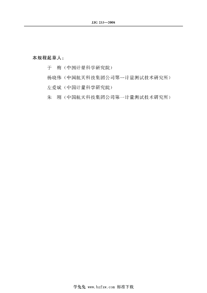 于梅(中国计量科学研究院)、杨晓伟(中国航天科技集团公司第一计量测试技术研究所)、左爱斌(中国计量科学研究院)、朱刚(中国航天科技集团公司第一计量测试技术研究所)