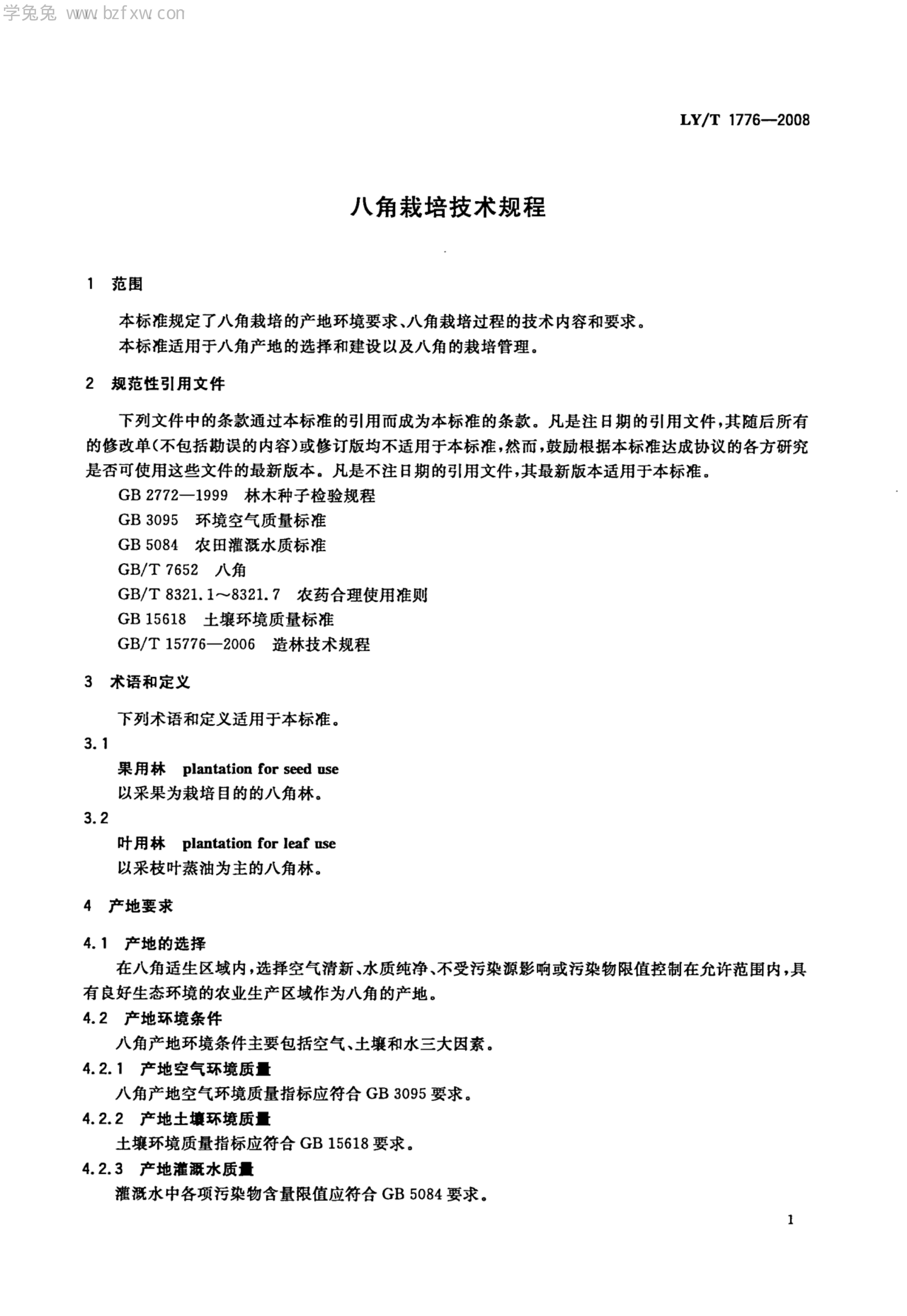 LY/T 1776-2008 八角栽培技术规程