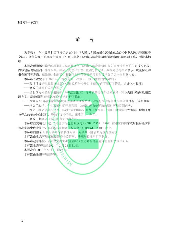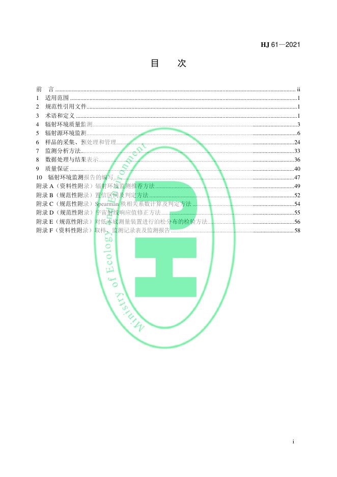 HJ 61-2021 辐射环境监测技术规范